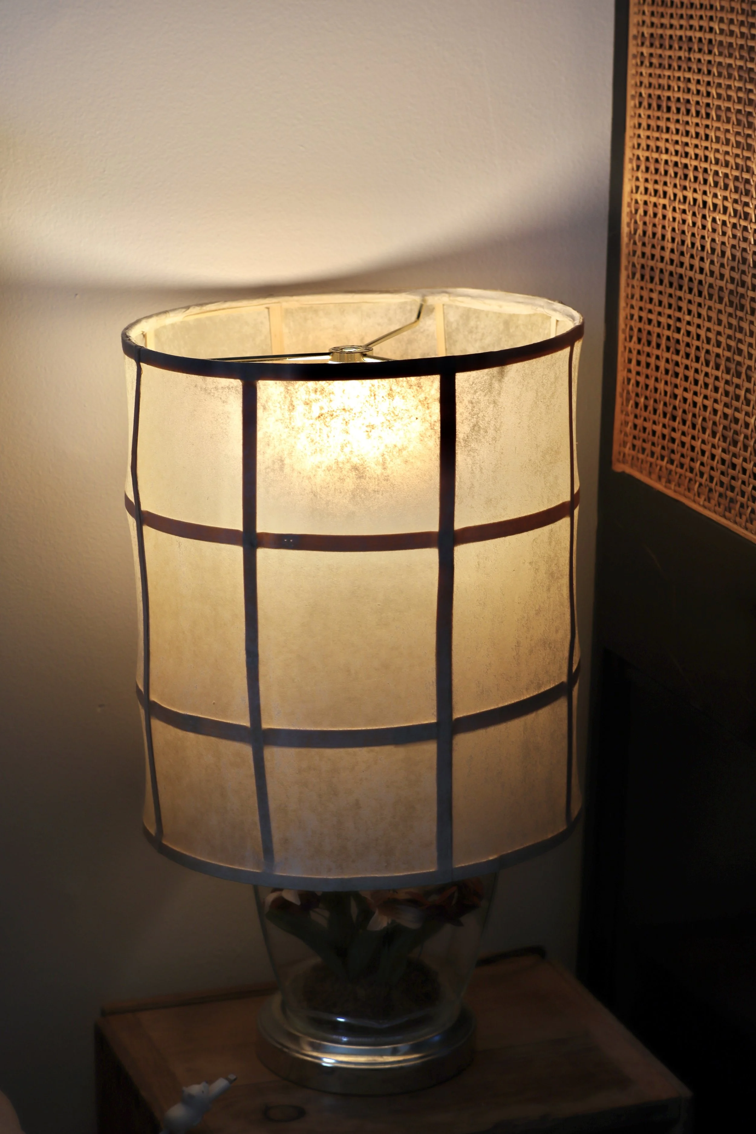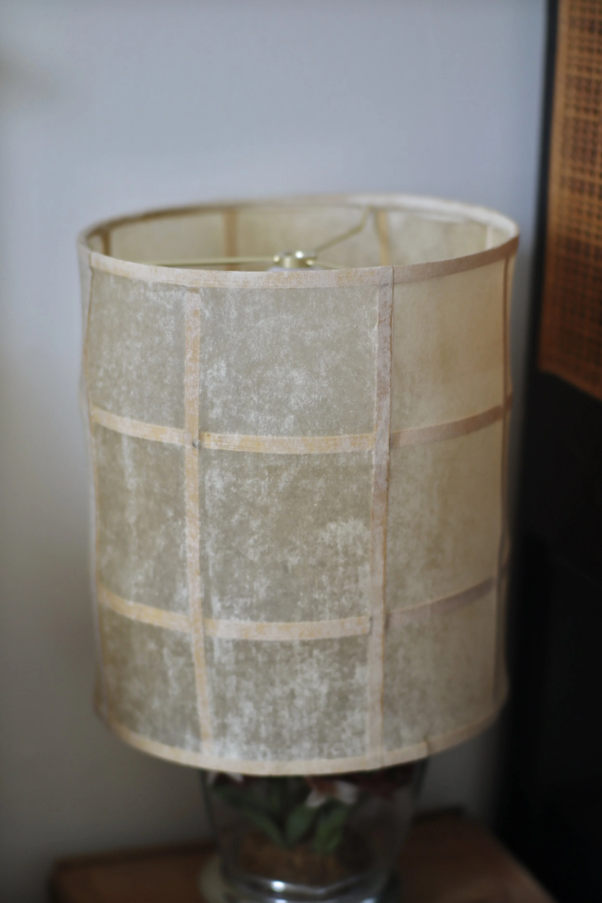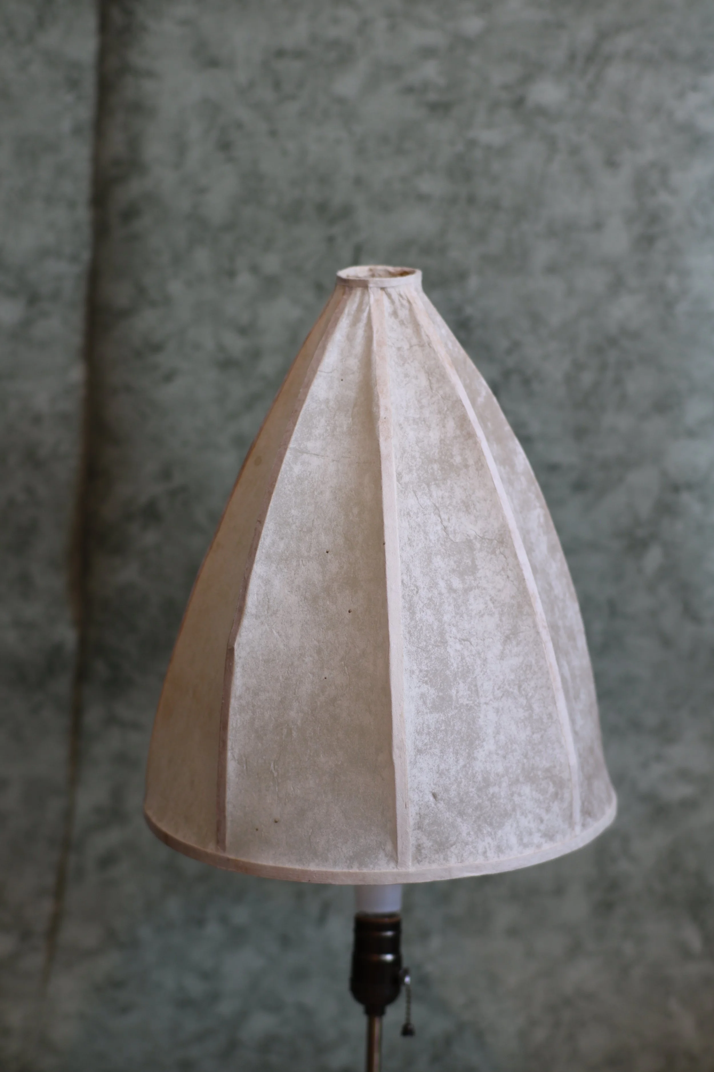 Bamboo, coffee-stained shoji paper with adhesive, lamp hardware